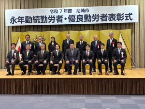 2025年(令和7年)11月5日(水)尼崎市中小企業センターに於いて、松本市長ご出席のもと、令和7年度尼崎市永年勤続勤労者・優良勤労者表彰式」が開催され、OSCから優良勤労者2名が表彰を受けました。
